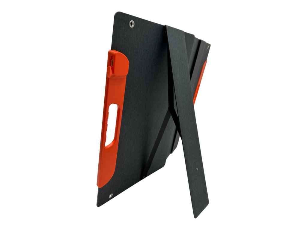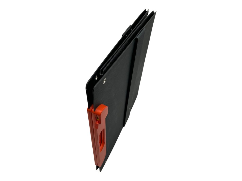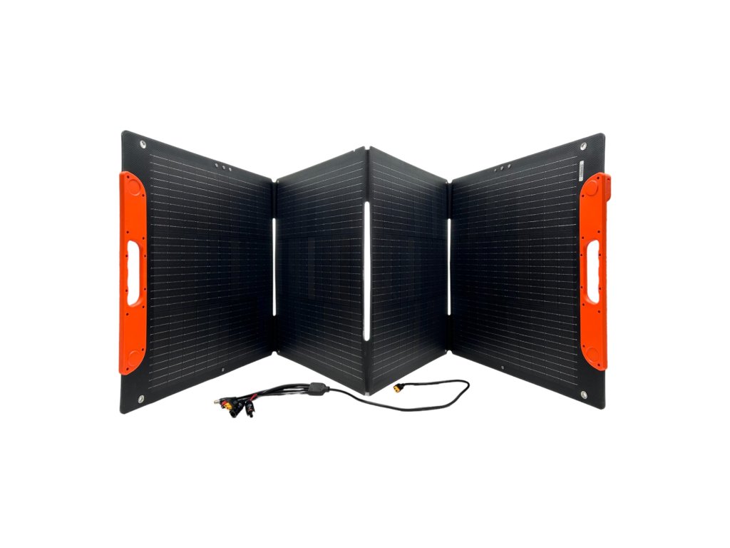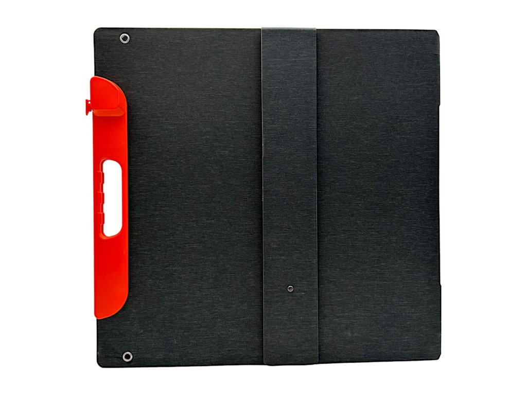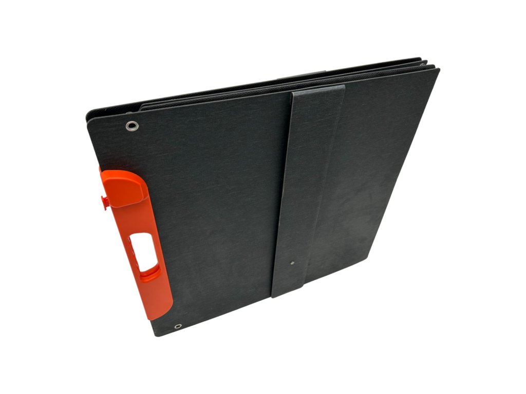 Přenosný solární panel s možností postavit panel proti slunci čímž zvýšíte jeho účinnost. Panel má 4 integrované podstavce. Větší solární panely se prohýbají, pokud je chcete postavit a je lepší je nechat pouze vodorovně na zemi.